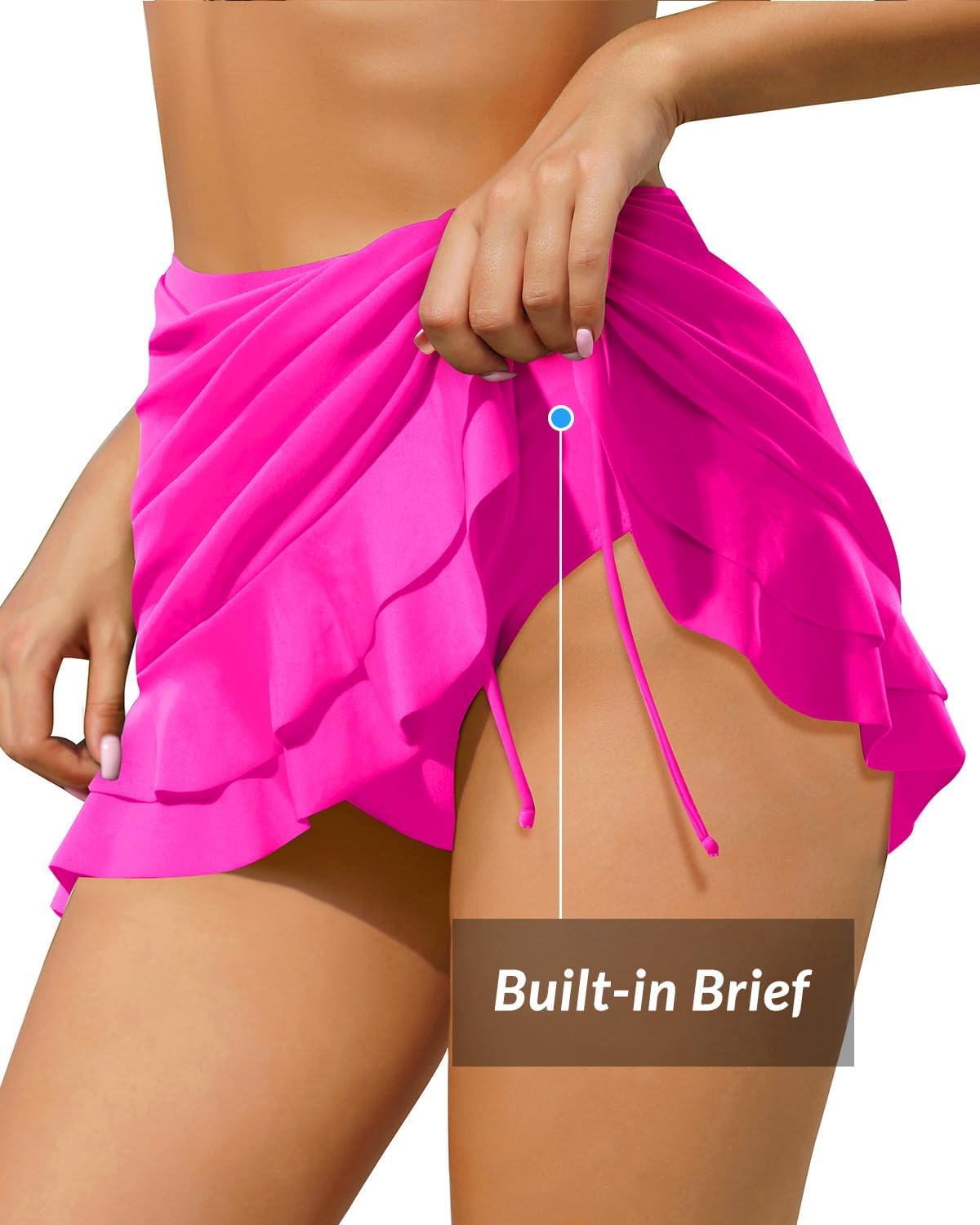 • Built-in Triangle Bottom: The built-in briefs offer comfort and security. The ideal length of the skirt and briefs highlights your charm while keeping you confident.